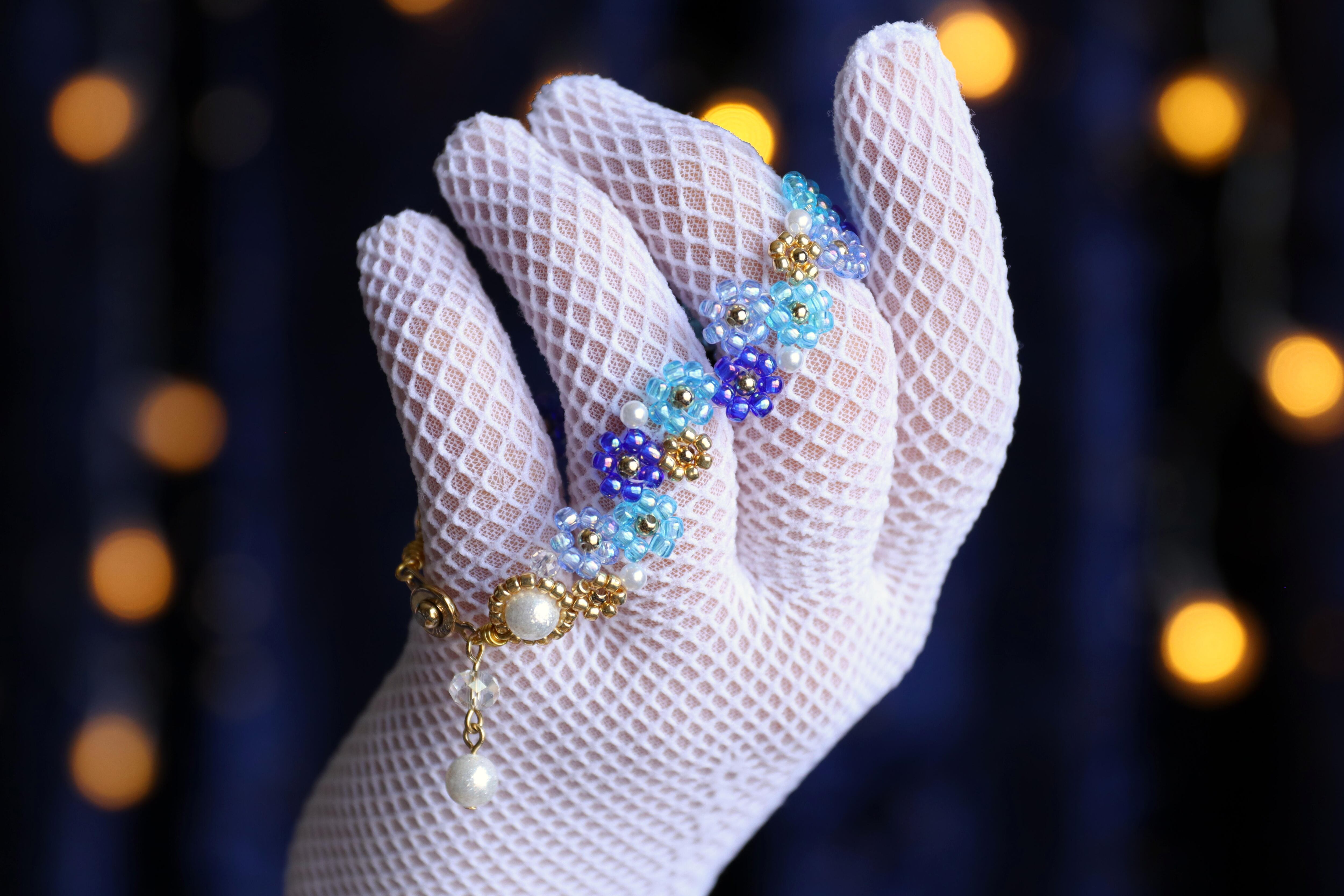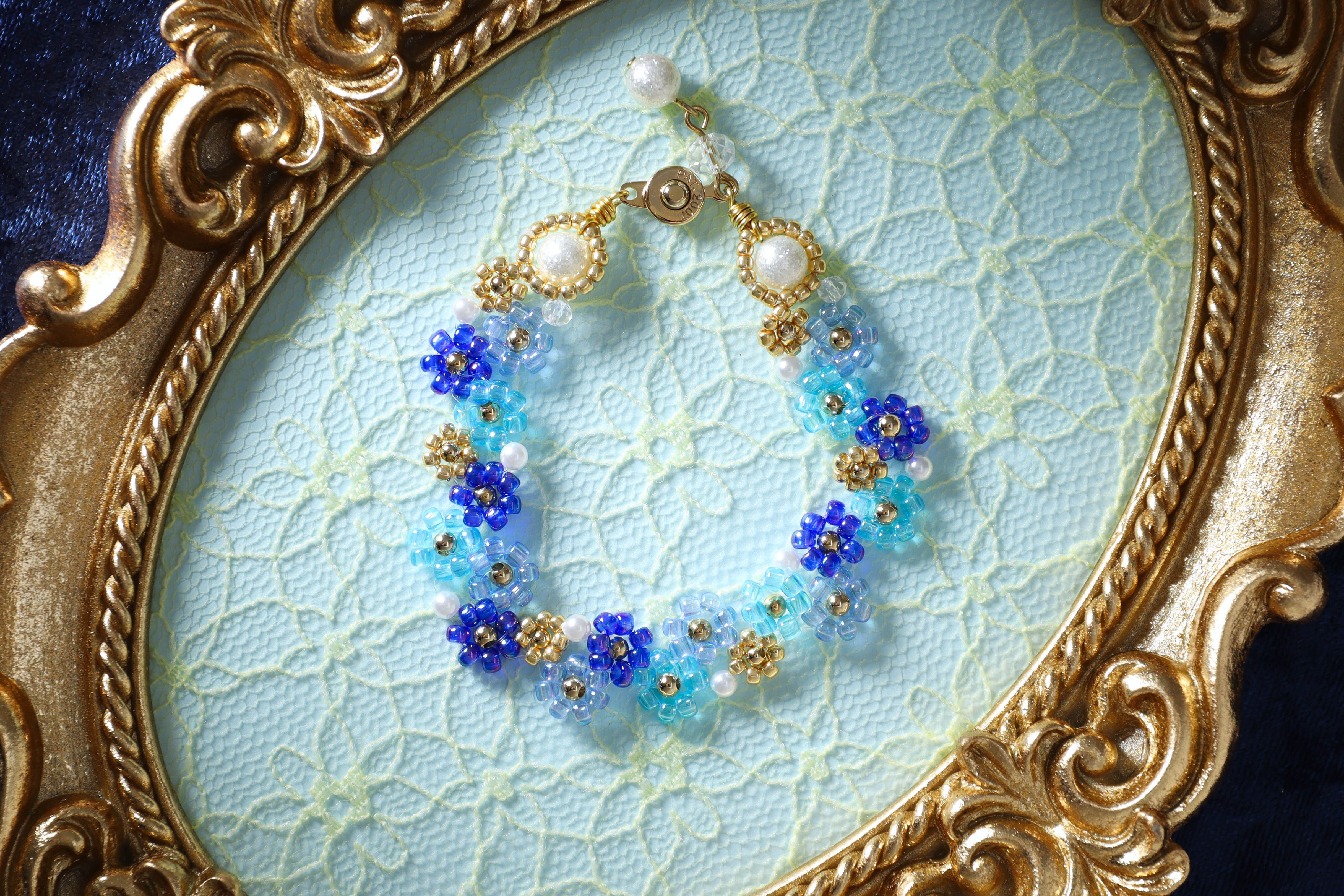 フラワービーズブレスレット ノスタルジックブルー 平成レトロ